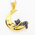 三日月に抱かれた猫ネックレス シルバー925 18Kコーティング ムーンネックレス
