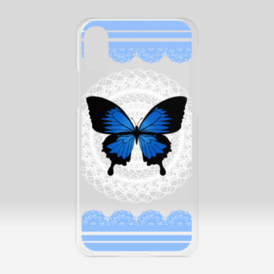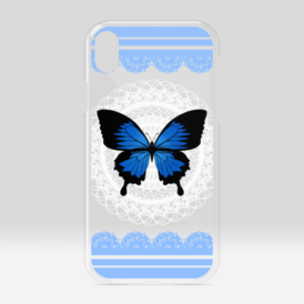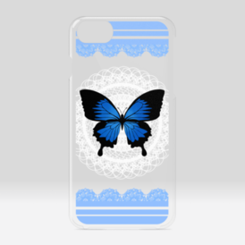 蒼い蝶々とレースが綺麗なクリアタイプのスマホケースです。 背景が透けているのでiPhone本体のボディカラーも見せたいという方におすすめです。 こちらはiPhone用です。 ※この商品はpixivFACTORYで製造、発送される商品です。 ※サンプル画像は完成イメージのため、実物と異なる場合があります。 ※受注生産、オンデマンド販売の為割高です。