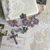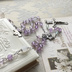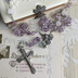 ※このロザリオはヴィンテージパーツを使用しているため同じものはつくれません。一点ものになります。 シルバー(925)のヴィンテージクロスと薔薇のセンターを、雨に透ける花弁のような淡いローズアメジストが彩る『露薔薇』。 ローズアメジストにわずかにシトリンが混在した珠をベースに、主の祈りは環の部分を薔薇カットのホワイトカルセドニーで清楚に、トップ部分はグリーンの蛍石で零れる草露を宿して。 シルバーパーツを使用している分、価格はあがってしまいますが、シルバーにふさわしいよい質の珠を選んでおります。お気に召してくださる方がおいでになれば。 ※チェーンやピン、カンはシルバーではありませんのでご注意ください。 お祈りのためのロザリオと同仕様で、カンの類は一切ついていませんが、そのまま首に掛けることができるサイズです。 クロス:約4.1×3.7(トップのカンを含まず) 環の内周:約64~66(若干の個体差が出ます) 珠:6ミリ 中が二室に分かれたアクセサリーポーチが付属します。