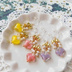 ビー玉の様な菱形のビーズはフランス製ガラスビーズ。 リボンコネクターと合わせて、 パールビーズを同系色のクリスタライズと一緒にしゃらんら。 乙女なワンピースにも、ランジェリーにも。 色違いの双子コーデも可愛いですよ。 ペアでの販売です。 透明な樹脂製のパーツを使用、金具が目立つことなく撮影にも向いています。 無穴パールを埋め込み、目立たない部分も可愛く。 挟むだけの簡単装着。 ドール耳のホール部分(実際は開いてませんが)に丁度挟むようにして頂けるとバランスが取り易いです。 樹脂ノンホールピアスパーツ:約11mm 無穴パール(アクリル):3mm リボンコネクター:横幅9mm 菱ギブレビーズ(フランス製ガラス):12mm シュリンクパール(アクリル):3mm ボタンカット(ガラス):3mm クリスタライズ(クリスタルガラス)5328:3mm 金具:ゴールドカラー(メッキ) ※リボンコネクター:真鍮無メッキ ※無穴パールの埋め込みにはボンドを使用しております。 ※ビーズの色の出方は個々で違います。 ※受注製作となります。 勿論人用としても使用可能、オーナー様との兼用も出来ます♪ 「在庫切れ」・「お問い合わせ下さい」と表示されている商品については、 材料の在庫次第で作製可能のものもございます。 お気軽にお問い合わせ下さい。 ※ドールは商品には含まれません。