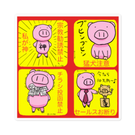 ステッカー - 100 x 100 (mm)この商品はpixivFACTORYで作られた商品です。サンプル画像は完成イメージのため、実物と異なる場合があります。4つのロゴは1つのシールになっているので1つ1つ使う時はハサミなどで切ってくださいブヒ。