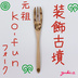 元祖ko-funフォーク~装飾古墳~ 古代を感じながらの食卓はいかがでしょう? 装飾古墳の代表的な文様をデザインしたフォークです。 同心円文、連続三角文、蕨手文。 手にも口にもなじみやすい、ぬくもりのある木製フォークです。 こちらのフォークはデザート系のお食事時におすすめです。 また、お子様用のフォークとしても大変好評いただいています。 *長さ:約15㎝、幅:約2㎝ *重さ:約5g *おすすめの用途:ケーキや果物、お子様用のフォーク 〈名入れします!:3枚目の写真を参照ください〉 ご注文時に、直接yuki.a宛にメッセージを下さい。 基本的にスプーンの柄の表部分にお書きします。 柄の裏側をご希望される場合はお伝えください。 ①~③を選んで名入れをしたい「お名前」を正確にお伝えくださいませ^^ ※ローマ字の場合、小文字なのか大文字なのか?(例:ABC、Abc、abc) ~よろしければ以下のテンプレートをお使いください♪~ *柄の表or裏: *①②③: *お名前(正確にお願いします)