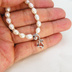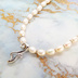 淡水パールを贅沢にもつなげて組み上げたパールネックレスに、シルバー925の猫シルエットモチーフのネックレスです しなやかな猫モチーフには眼の部分にジルコンを埋め込んで華やかさをアップさせています モチーフ周辺のパールネックレスにはつなぎにシルバー925のフラワーパーツを挟んでパールネックレス自体も華やかさをアップさせています 普段使いはもちろんのこと、お出かけにもフォーマルにもご利用いただけるエレガントな猫モチーフのパールネックレスはいかがでしょうか モチーフのペンダントはもちろんチェーンなどの金属部分は金属アレルギーの方でも安心なシルバー925です 「シルバー925」 一般的にシルバーと呼ばれるアクセサリーで使われている素材をさします シルバーの後に続く925という数字は銀の含有率(純度)のことを意味し、92.5%のシルバーが含まれていることを表します 銅などの金属を混ぜて銅と銀の合金にします なぜこの含有率かというと、銀の性質上100%で作ると柔らかくてアクセサリーには少し不向きだからで、そのため強度を保つために他金属を混ぜているのです 「材質」 淡水パール ジルコン シルバー925 アレルギー防止加工 プラチナ仕上 「寸法」 キャットサイズ:約20mm×11mm 淡水パール:約6~8mm ジルコン:2mm チェーン長さ:約40cm ※ご使用のモニターの色の違いにより、実際の商品と色味が若干異なる場合がございます PRL-NK02