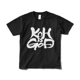 黒・XLサイズLEOさんプロデュースのKOH is GOD Tシャツ DXです。背中にKOHさんがミリオンスターズで担当した楽曲名が入ってます。 ※黒色は原価の都合上若干高めの値段設定となっております。申し訳ございません。 ※この商品はpixivFACTORYで作られた商品です。サンプル画像は完成イメージのため、実物と異なる場合があります。