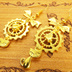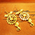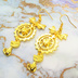 猫と歯車とリボンのユニークで華やかなピアス ゴールドカラー