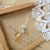 6㎜スワロフスキーをメインに、フラワーパーツ、アクリルビーズを縫い付け、リーフとチェコビーズを繋げました。