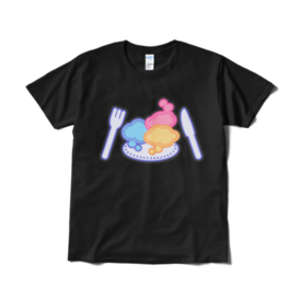Tシャツ(短納期) - XL - ブラック夢羽九が着用しているパーカーと同じく、表に「はらぺこワッペン」、裏に「羽ワッペン」があしらわれたTシャツです。 この商品はpixivFACTORYで作られた商品です。サンプル画像は完成イメージのため、実物と異なる場合があります。