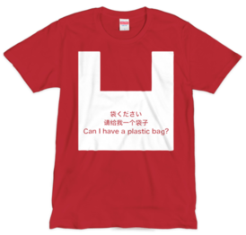袋くださいTシャツ(レッド)