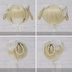 丸みのあるショートヘアに、くるんと丸めた三つ編みプードルヘアをリボンで留めています。 平置きしていると、三つ編みの輪っかが浮いたような感じになることがありますので、その際はやさしくぎゅっと手の中に収めると落ち着きます。 お届けしたあと、すぐにお使いいただけるように、ウィッグすべてを一つ一つ丁寧に検品、消毒、ドールにかぶせての着用確認、カット、熱処理等を用いての調整や全体的なスタイリング調整をしております。