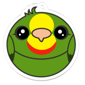 オリジナルキャラクターのミカヅキインコのアクリルキーホルダーです。レアインコをできる限りシンプルなデザインにしました。丸に近いデザインのため、他のアクリルキーよりも少し大きめになっています。
