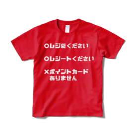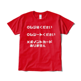 Tシャツ(短納期) - XL - レッド「レジ袋」「ポイントカード」「レシート」の会計3関門をTシャツだけで伝えたい人用のよくばりTシャツです この商品はpixivFACTORYで作られた商品です。サンプル画像は完成イメージのため、実物と異なる場合があります。
