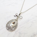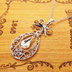 ティアドロップ アラベスク調透かし しずく型モチーフとリボンのネックレス ラインストーン 長さ調整可