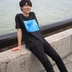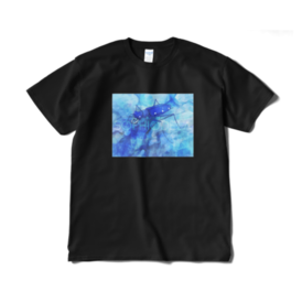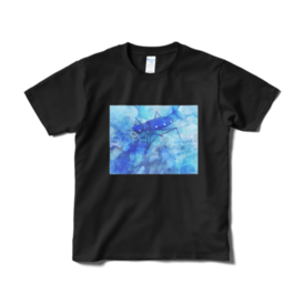 Tシャツ(短納期) - XL - ブラック綺麗な青色に染まったアマミハンミョウのTシャツです。 細い体躯に幻想的な深い青の美しさを表現しました。 黒いTシャツに青いデザインが落ち着いた格好良さを感じさせます。 モデル身長:171cm モデル着用:Mサイズ この商品はpixivFACTORYで作られた商品です。サンプル画像は完成イメージのため、実物と異なる場合があります。