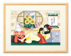引越し挨拶状兼暑中見舞い「和室少女と猫」