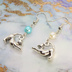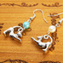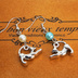 アンティークシルバー のび猫シルエットモチーフとパールビーズ(ホワイト・アクア)のピアス サージカル可