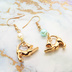 マットゴールド のび猫シルエットモチーフとパールビーズ(ホワイト・アクア)のピアス サージカル可