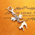 アンティークシルバー 跳ね猫とリボンの大人可愛いファスナーチャーム キーホルダー マスクチャーム 金具交換可