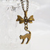 アンティークゴールド 跳ね猫とリボンのモチーフを組合せたコンパクトで大人可愛いネックレス 長さ変更可 アジャスター可