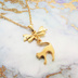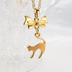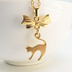マットゴールド 跳ね猫とリボンのモチーフを組合せたコンパクトで大人可愛いネックレス 長さ変更可 アジャスター可