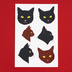 猫の顔の絵柄の転写タトゥーシールです。 画面上、白地に見える部分は実際には透明になります。 貼り付けたときには、写真とは左右反転します。 猫の顔の絵柄 正面2種、横顔2種を色とサイズにバリエーションをつけて収録しました。 全6点。 絵柄のサイズ サイズ大 幅40mm程度 サイズ小 幅33mm程度。 水で湿らせて貼り付けるだけなので簡単。はがすこともすぐできます。 タトゥーシールとして肌につける以外にも、プラスチックや金属など表面がなめらかなものに貼り付けられます。 【素材】 市販の転写シール 透明タイプ 【サイズ】 幅100×高さ148mm 【購入の際の注意点】 表面の粗いものにはきれいに転写できません。 水を使って転写させるため、紙など水に弱いものには転写できません。 肌に転写した場合は一日を目安にはがしてください。 シートは湿気を吸いやすい性質があるので、なるべく早めにお使いください。