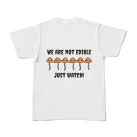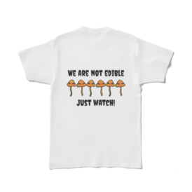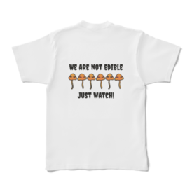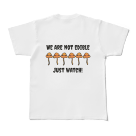 キノコ真っ盛りのこの季節、こんなお悩みありませんか? キノコを観察しているだけなのに、通りすがりの人に「そのキノコ食べられるんですか?」という質問をされること そんなあなたのために、このTシャツを作りました 「食べられません見てるだけTシャツ」 敵は背後からやってくる!大胆なバックプリントで「食べられるの?」攻撃を回避!! ※この商品はpixivFACTORYで作られた商品です。サンプル画像は完成イメージのため、実物と異なる場合があります。