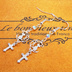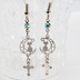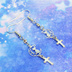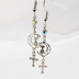 猫が座る透かし三日月とロザリオを組み合わせたピアス スワロフスキー