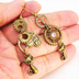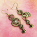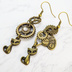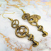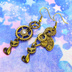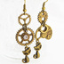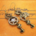 アンティーク調の猫と歯車のアシンメトリーピアス スワロフスキー スチームパンク イヤリング