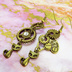 アンティーク調の真鍮古美色でまとめた猫と歯車のピアスです(イヤリング可能) スチームパンク風に歯車を組み合わせた多層構造でアシンメトリーになっています 片方のピアスの歯車の中心にスワロフスキーを追加して華やかさもアップさせています コンパクトでありながらも多層構造にして、ジャマにならないちょうどよい大きさに仕上げています お出かけはもちろんのこと、普段使いにもご利用いただけます ※モチーフは亜鉛合金にメッキ、金具はスチール製ですので金属アレルギーの方はご注意ください ※こちらはフックピアスをネジバネ式イヤリング(アンティークカラーの丸皿タイプ)に変更が可能です 「素材」 スワロフスキー 亜鉛合金:メッキ スチール等(ピアス金具など) 「寸法」 全長(ピアス部含めず):約45mm×15mm~18mm 猫サイズ:約16mm×10mm 重量:(ピアスの場合・2個で) 約6.8グラム 【ご注意】 ※ご使用のモニターの色の違いにより、実際の商品と色味が若干異なる場合がございます。 NN-ER87
