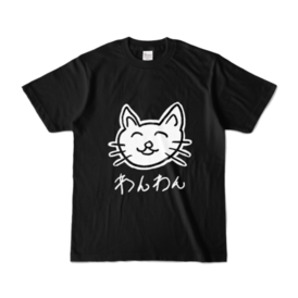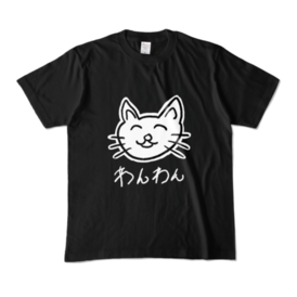 カラーTシャツ - XL - ブラック (濃色)ねこがわんわんと鳴いているTシャツ。