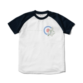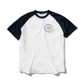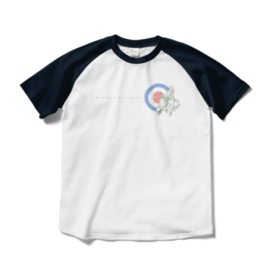 ラグランTシャツ - XL - ホワイト×ネイビーvox+佑子をモッズアレンジでフロントに。ユニセックスな魅力の一枚。 (フロントのみ) ※この商品はpixivFACTORYで作られた商品です。サンプル画像は完成イメージのため、実物と異なる場合があります。