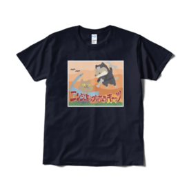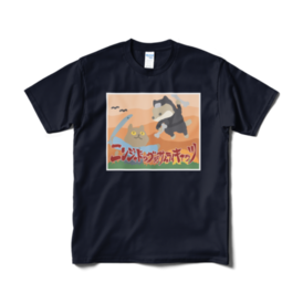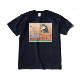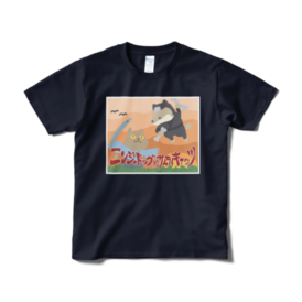 Tシャツ(短納期) - XL - ネイビーやほーー!!大潮ルカだよ!!🐳🍹 私が描いた時代劇映画『ニンジャドッグ対サムライキャッツ』の映画ポスター風Tシャツ!!🐶😾 君はどっちを応援する??🐕💥🐈