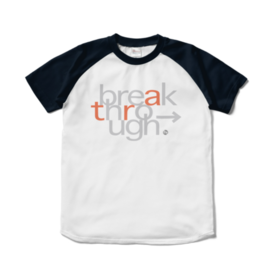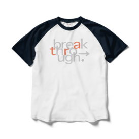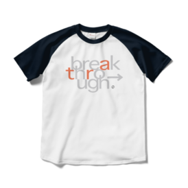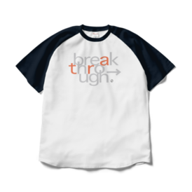 ラグランTシャツ - XL - ホワイト×ネイビー[break through→]のロゴタイプをシンプルにデザイン(フロントのみ) ※この商品はpixivFACTORYで作られた商品です。サンプル画像は完成イメージのため、実物と異なる場合があります。