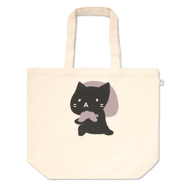 トートバッグ - L - プリント面積中手ぬぐいを巻いた黒猫さんのトートバッグです。 この商品はpixivFACTORYで作られた商品です。サンプル画像は完成イメージのため、実物と異なる場合があります。