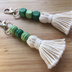 Beaded Keychain ラウンドウッドビーズ3連とタッセルのキーチェーン(グリーン)
