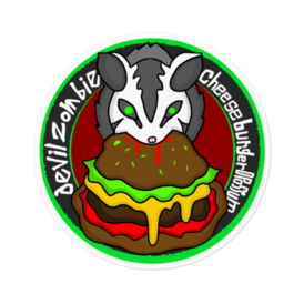 悪魔のゾンビチーズバーガーオポッサムステッカー(英語)