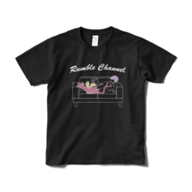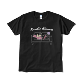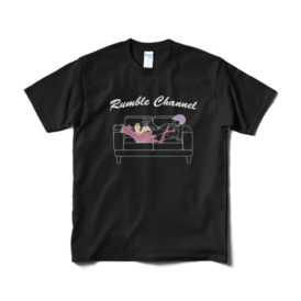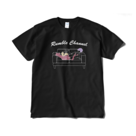 Tシャツ(短納期) - XL - ブラックソファでくつろぐらんぶるとコーギーのTシャツ黒です。 ※この商品はpixivFACTORYで作られた商品です。サンプル画像は完成イメージのため、実物と異なる場合があります。 写真モデル:身長182cmでMサイズ着用