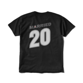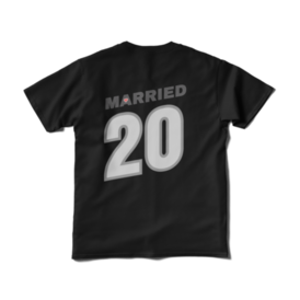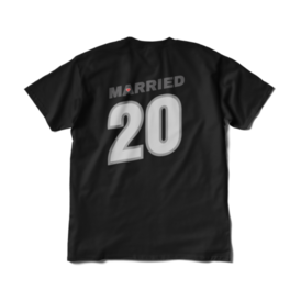 Tシャツ(短納期) - XL - ブラックペアルックTシャツ! 奥ゆかしさを醸し出す、後面プリント! 【ペア・左】と並ぶことで、 「○○○○年に結婚しました」の意味になります。 その結婚生活、いつまで続くかな?!
