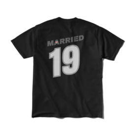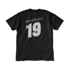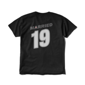 Tシャツ(短納期) - XL - ブラックペアルックTシャツ! 奥ゆかしさを醸し出す、後面プリント! 【ペア・左】と並ぶことで、 「○○○○年に結婚しました」の意味になります。 その結婚生活、いつまで続くかな?!
