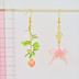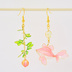 こちらは金魚と水草のピアス(イヤリング)になります。 夏らしい、透け感のある金魚になりますので、これからの季節にお使いいただけるかと思います。 また浴衣やお着物の柄に合わせて使っていただけるかと思います。 【イヤリング、樹脂製ピアスへの変更可能です。】 お気軽にご相談ください。 全長約6センチ 素材 花飾り部分:真鍮、樹皮液、レジン ピアス部分:スチール 花飾りはレジン液で硬化させて強度を上げていますが、繊細な作品になりますので、取り扱いにはご注意ください。 水に濡らしたり、直射日光、高温多湿な場所での保管は破損や劣化の原因に繋がりますので、控えてください。 強い衝撃を加えると破損に繋がりますので、お気を付けください。 ご不明な点がございましたら、お気軽にご質問ください。