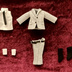 ねんどろいどどーるボディが着用出来るスーツセットになります。ねんどーるの身長調整には対応しておりません。 ジャケット、パンツ、ベルト、靴下、シャツ、袖口、ネクタイの7点セットです(靴は含まれません) ジャケット、パンツのポケットは物が入れられる仕様ですが繊細な作りなのであまり力を加えると破損の恐れがあります。お取り扱いは丁寧にお願いいたします。 ネクタイは首の部分がゴムになっていて首を外して引っ掛けて付けるタイプです。ヘッドが取れないタイプのドールは付けられませんのでご注意下さい。 ジャケットは身頃のみ裏地付き、前はホックで留めるタイプです。ホックはメス側が付いてますが間違いではなくあまり目立たないようにしたい為あえて使っています。 3mm磁石を2点付けますのでネクタイを留めるのにお使いください。詳しい使用方法やその他細かい仕様はブログで説明しています。(http://monco102.blog.fc2.com/blog-entry-13.html) 黒、ライトグレー、グレーのスーツセットはシャツの色が白、ネクタイとベルトが黒、白のスーツセットはシャツの色がブルー、ネクタイとベルトが白です。 また白とライトグレーのセットは靴下が白、グレーと黒のセットは靴下が黒になります。 またジャケットの前のボタンは2.5mmのボタンを使っているのですがもう手に入らない為、無くなり次第3mmのボタンに変更となります(最後の画像参照) 他の色と組み合わせたい場合は単品販売をご利用下さい。 単品はそれぞれに手数料がかかるのでセットよりも割高になりますのでご了承の上お申し込み下さい。 ねんどーるボディはオビツ11ボディと比べ、色移りしやすい為着せたままにしないようご注意ください。 1月24日(水)23:59まで受注予定です。 受注なので注文数によって発送できる時期が変わってきますので予想が立てづらく予定より発送が前後する事があります。ご了承ください。発送時期が分かり次第こちらのページの発送時期を更新致します。 発送方法はあんしんBOOTHパック宅急便60サイズ(¥ 860 〜 ¥ 1,960)になります。