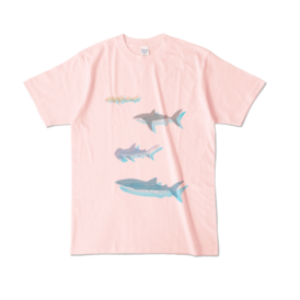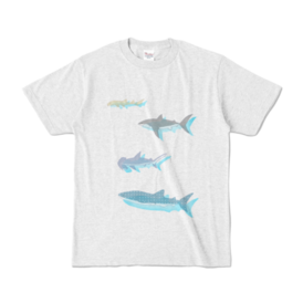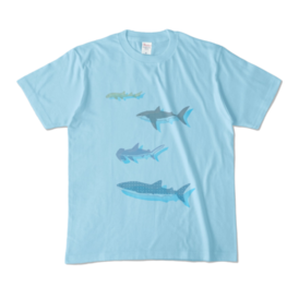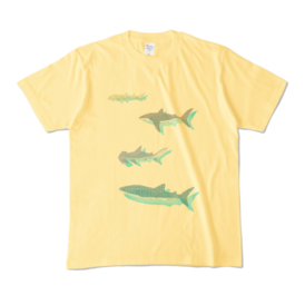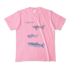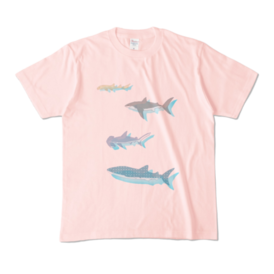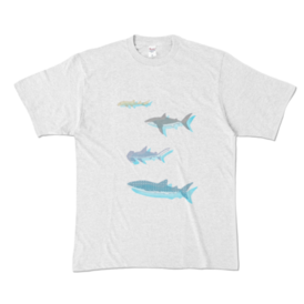 ドット絵のサメです。 ホホジロザメ・イヌザメ・シュモクザメ・ジンベエザメ 厳しい猛暑なので涼しげなサメにしてみました🎐🦈 Tシャツカラーバリエーション:アッシュ・ライトグリーン・ライトブルー・ピーチ・ライトピンク・ライトイエロー ダイレクトインクジェット方式での印刷になります。 ※捺染顔料インクでウェアに直接プリントしますので、布にインクが染み込み通気性がよく自然な風合いが特徴です。 ※白色は印刷されず、生地の色の影響を受けた仕上がりになります。 この商品はpixivFACTORYで作られた商品です。サンプル画像は完成イメージのため、実物と異なる場合があります。