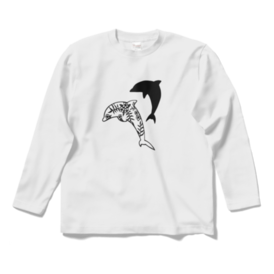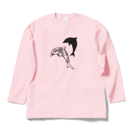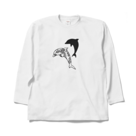 ロングスリーブTシャツ - XL - ホワイトイルカの柄をプルメリアのデザインにしました。 ※この商品はpixivFACTORYで作られた商品です。サンプル画像は完成イメージのため、実物と異なる場合があります。