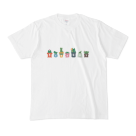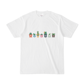 Tシャツ - XL - 白【FteroオリジナルデザインTシャツ】 猫型サボテンのかわいい鉢植えのデザイン