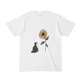Tシャツ - XL - 白猫とひまわりのデザインにしました。 ※この商品はpixivFACTORYで作られた商品です。サンプル画像は完成イメージのため、実物と異なる場合があります。