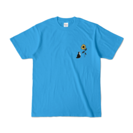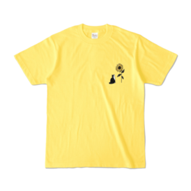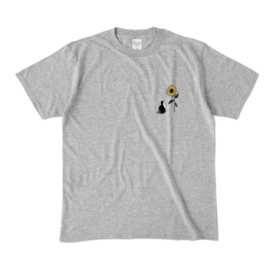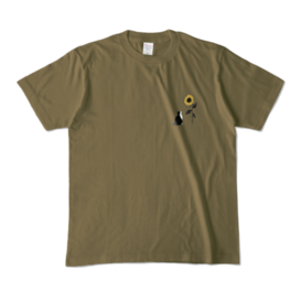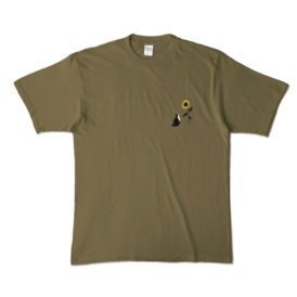 カラーTシャツ - XL - オリーブ (濃色)猫とひまわりのワンポイントTシャツです。 ※この商品はpixivFACTORYで作られた商品です。サンプル画像は完成イメージのため、実物と異なる場合があります。