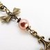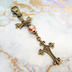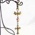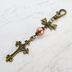 アンティークゴールド ロザリオとリボンの組み合わせにココアブラウンビーズキーホルダー ファスナーチャーム