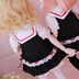 [セット内容]白ワンピース(インナー)、セーラー襟ロングベスト(アウター)、胸元のリボンの3点 [対象ドール]MDD(S胸推奨、M胸まで可)、SDM 白ワンピース:白のコーマローン生地で制作しています。着脱は背面のスナップボタンになります(写真6枚目)白ワンピースだけでもお部屋着や夏ワンピースとして着用できます(写真5枚目)胸元は同生地の裏地で、スカートは2重になっています。スカートのシワはデザイン的にわざとつけています。 セーラー襟ロングベスト:表は黒いやや厚手の生地を使用し、内側には白の裏地がついています。前開きのジャケットで白のワンピースの上に重ね着して胸元をリボンピンで止める仕様です(写真6.7枚目)セーラー襟は縫い付けのため取り外しはできません。 リボンピン:ピンは造花ピンを使用しています。 リボン端はほつれ止めを使用しています。ロングベストの胸元を合わせるための飾りピンになります。リボンピン単体でもご使用できます。 [色移り・縫製に関しまして] ※色移り防止のため裏地は白色で製作いたしました。 布の切り返し部分やリボン、カラー糸使用ヶ所もあるため完全な色落ち防止対策とはならないことを予めご了承ください。洗濯の際に漂白剤を使用しますとジャケットやリボン部分が色落ちする可能性がありますのでご注意ください。 ※セットにドール本体、スタンド、ウィッグ、ソックス、シューズなどは含まれておりません。