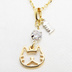 ゴールドカラー 猫フェイス(ハチワレ)モチーフとキュービックジルコニアのネックレス お魚 長さ変更可 SV925 18KGC変更可