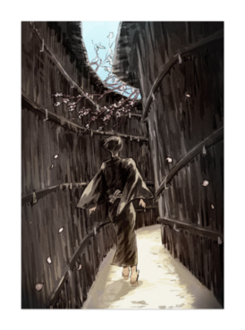 春めいた青年の後ろ姿のポスター。 とてもきれい。 おひとついかが。