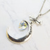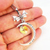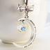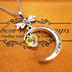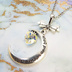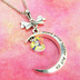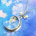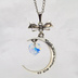 アンティークシルバー 三日月とハートのペンダントネックレス スワロフスキー(クリスタルオーロラ) 長さ調整可